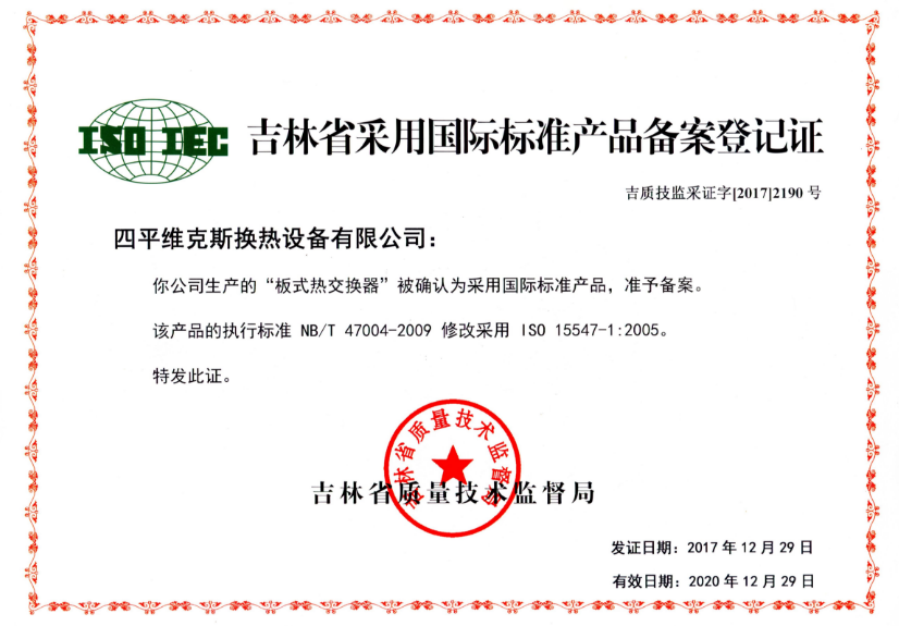 古林省采用國(guó)際標(biāo)準(zhǔn)產(chǎn)品備案登記證