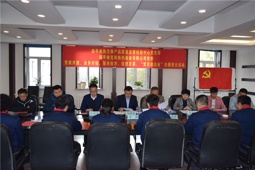 為了實(shí)現(xiàn)事業(yè)單位黨組織與非公企業(yè)黨組織優(yōu)勢(shì)互補(bǔ),以黨建工作促進(jìn)業(yè)務(wù)發(fā)展,充分發(fā)揮事業(yè)單位黨組織和黨員服務(wù)經(jīng)濟(jì)、促進(jìn)發(fā)展的作用,充分發(fā)揮非公企業(yè)黨組織和黨員服務(wù)生產(chǎn)、促進(jìn)和諧的作用,10月24日,四平市熱交換產(chǎn)品質(zhì)量監(jiān)督檢驗(yàn)中心黨支部與四平維克斯換熱設(shè)備有限公司黨委聯(lián)合開(kāi)展了黨建共建、業(yè)務(wù)對(duì)接、服務(wù)經(jīng)濟(jì)、促進(jìn)發(fā)展“黨員進(jìn)企業(yè)”主題黨日活動(dòng)。四平市市場(chǎng)監(jiān)督管理局陸曉波副局長(zhǎng)、魏巖忠副局長(zhǎng)、四平市熱交...